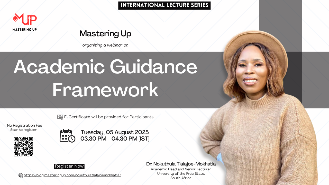 Mastering Up organizing a free online skill development session titled Academic Guidance Framework delivered by “Dr. Nokuthula Tlalajoe-Mokhatla [Academic Head and Senior Lecturer,University of the Free State,South Africa]”